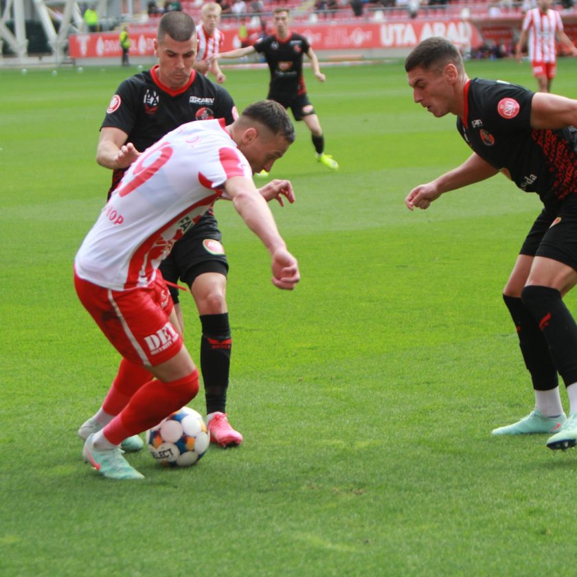 Min 84 – ocazie mare pentru aradeni – Alomerovic suteaza din afara careului dar mingea este deviata in corner de catre defensiva oaspetilor !