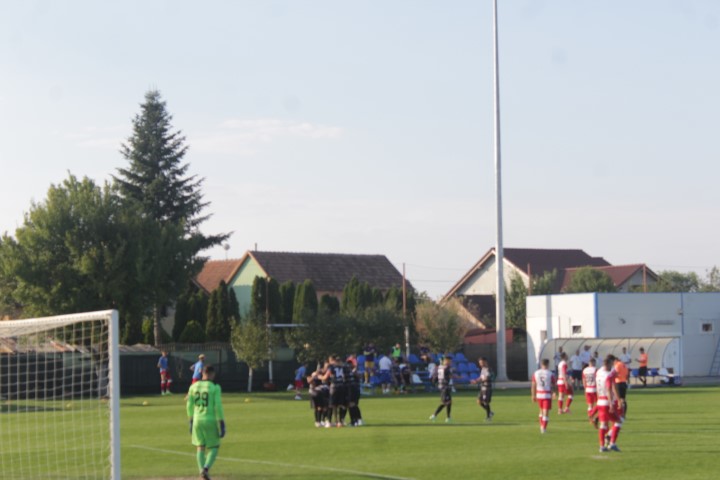 Jocul a fost destul de echilibrat în prima parte. Prima ocazie importantă a fost a lui Benzar, care a trimis în minutul 29 pe lângă poartă din interiorul careului doar cu portarul Buta în faţă. Acelaşi goalkeeper al gazdelor avea însă să-i ofere o minge cadou în primul minut de prelungire al reprizei I. Mingea aruncată de aceasta a fost preluată de Daniel Benzar în circa 20 de metri şi mijlocaşul nostru ofensiv nu a mai iertat, punctând cu un şut pe jos în dreapta portarului, spre satisfacţia sectorului vizitator, umplut până la refuz. Cu doar un minut înainte Murariu le-a refuzat gazdelor deschiderea scorului, respingând în duel unu la unu cu Trabalka.