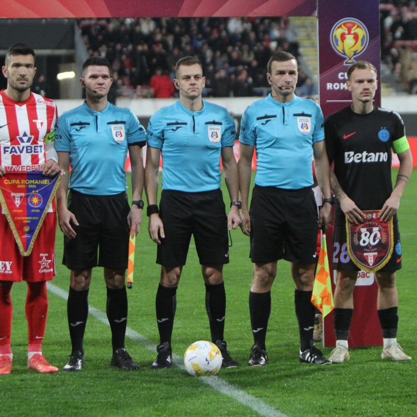 Brigada de arbitri – la centru – Catalin Roman – asistenti – Alex Filip si Raul Ghiciulescu