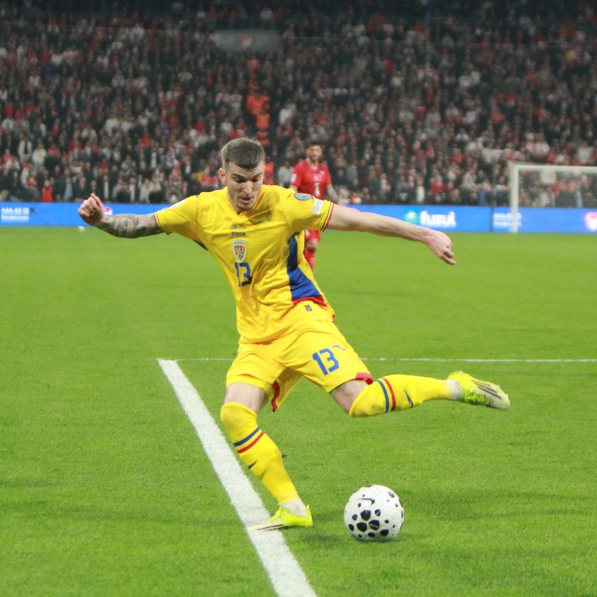 Min 23 – Hagi suteaza din interiorul careului mare dar mingea il loveste in cap pe Yuksek si iese in corner –